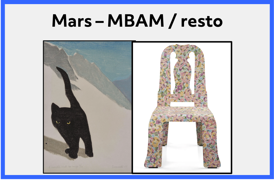 Sortie au Musée des Beaux Arts de Montréal le 16 mars de 11 h à 13 h, au 1380, rue Sherbrooke Ouest (station de métro Guy-Concordia), cout d’entrée : 24 $, gratuit pour les membres du musée avec carte.